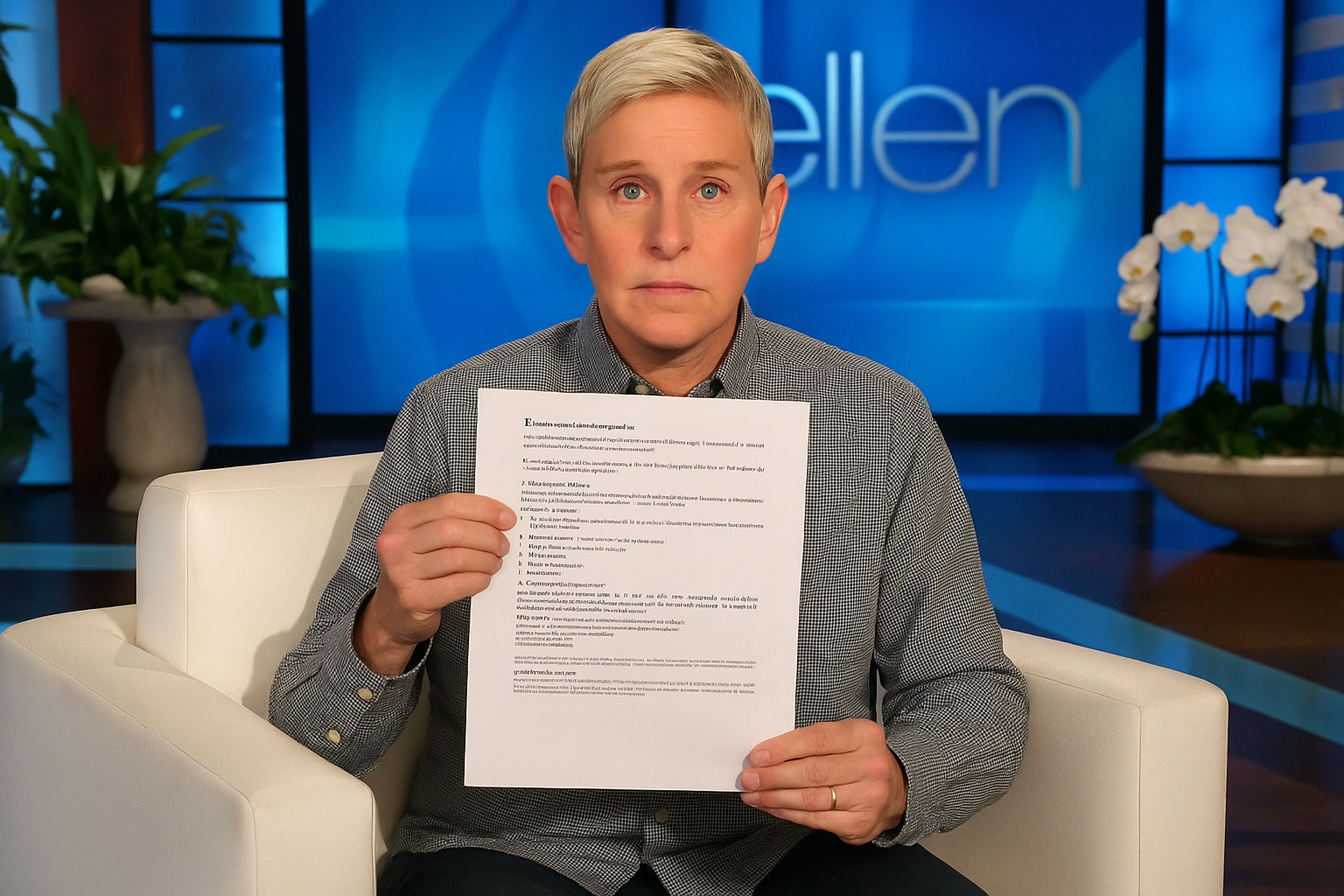 Hello everyone, I'm Ellen DeGeneres, and welcome to my talk show, "The Ellen Show." Today, I want to share a story about car insurance, which is a true experience of mine, hoping to inspire you all.